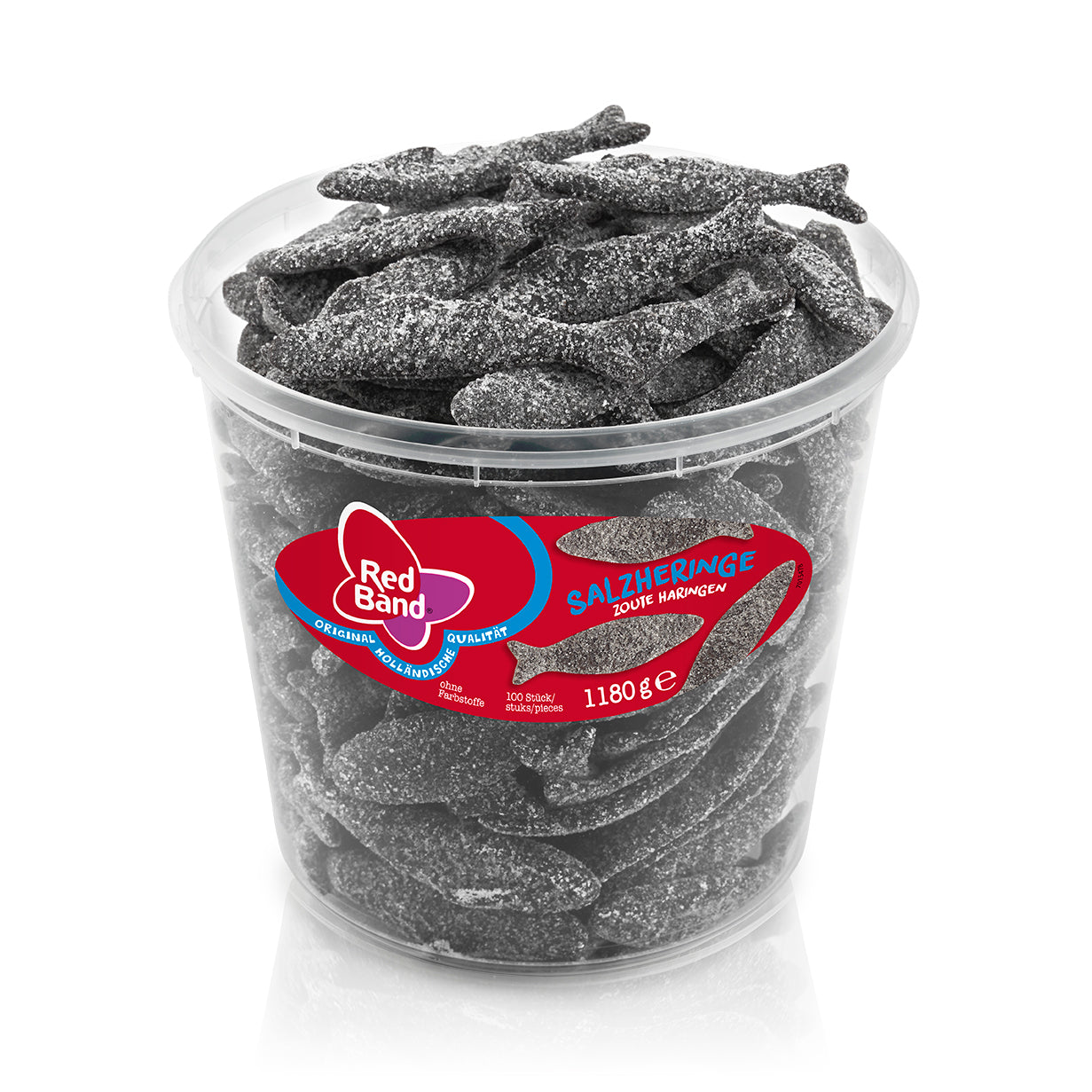 Red Band Salzheringe: Würziges Lakritz trifft auf süß-salzigen Mantel! Diese Heringe schmecken garantiert nicht nach Fisch, sondern bieten ein perfekt ausbalanciertes Lakritz-Erlebnis. Einmal probiert, will man mehr – gut, dass die Packung für einen Schwarm reicht!