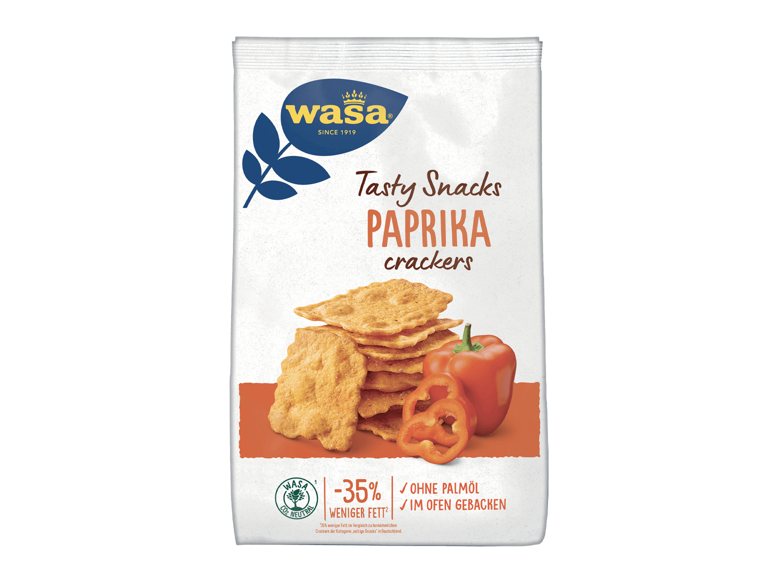 Die Wasa Tasty Snacks sind hauchdünne, im Ofen gebackene Cracker. Sie überzeugen durch den süßlich-würzigen Geschmack der Paprika in Kombination mit leckerem Weizenteig. Ideal als Snack für zwischendurch, pur oder mit einem Dip.